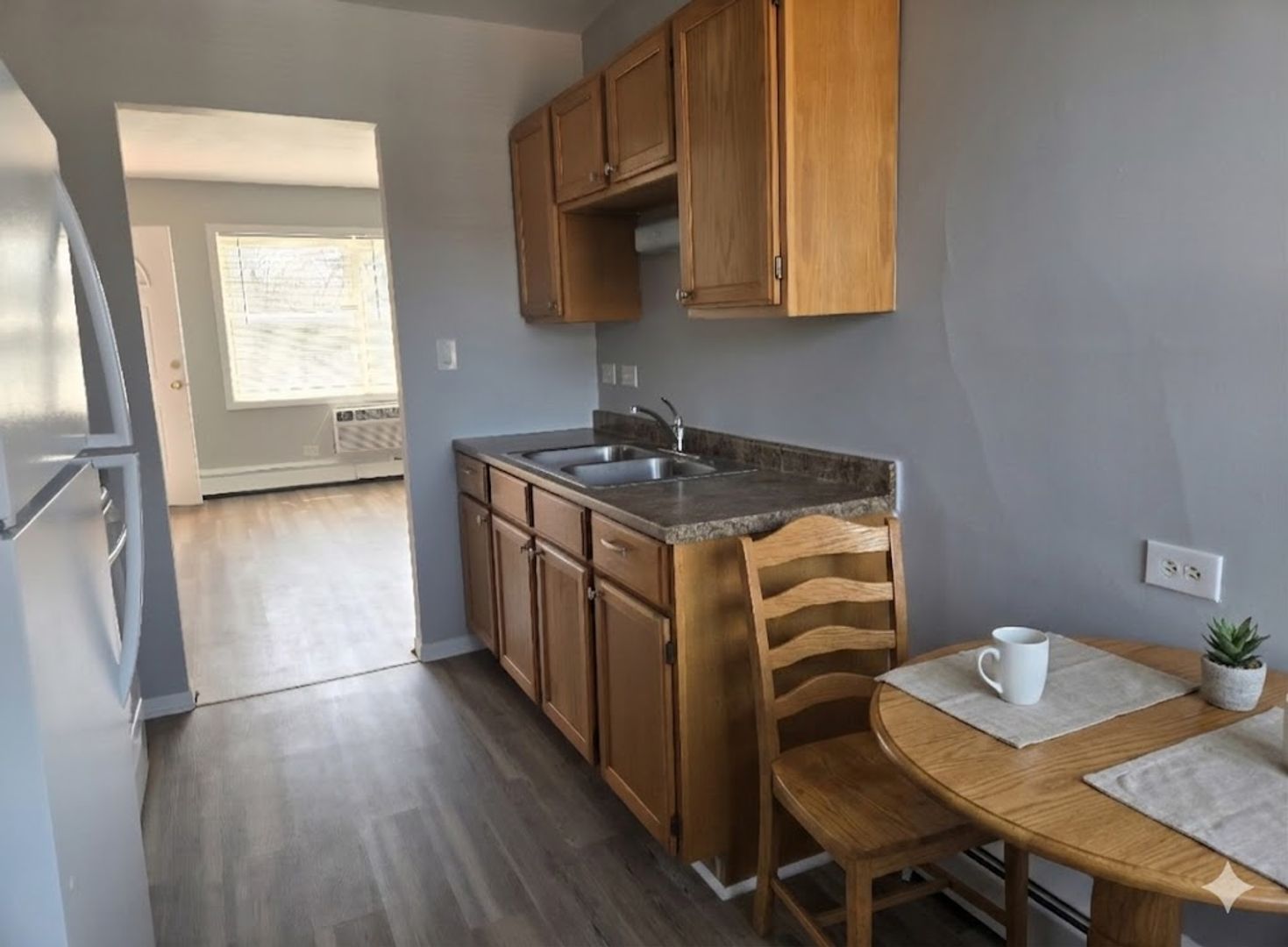 Spacious 2-bedroom, 1-bath end-unit apartment in Palatine, IL—perfect to call home! This charming unit offers private entry doors with no shared hallways, providing added privacy and appeal. Conveniently located near the train station, downtown Palatine, shopping, and restaurants.
