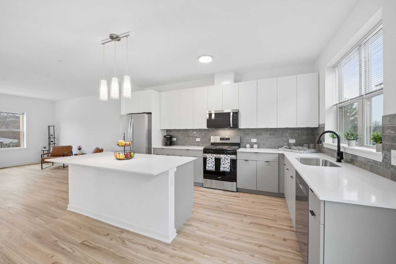 Brand-new Spacious Luxurious 2 Bedroom Townhomes in Oak Forest, IL are move-in ready and offer modern living across 2 bedrooms and 2.5 bathrooms. Each townhome includes in-unit laundry and an attached garage for convenience. The community sits near restaurants, a coffee shop, shopping, a neighboring park, and provides easy access to the Metra train station and downtown. A 24/7 fitness center is available on-site. These townhomes blend contemporary finishes with a convenient location for everyday needs.